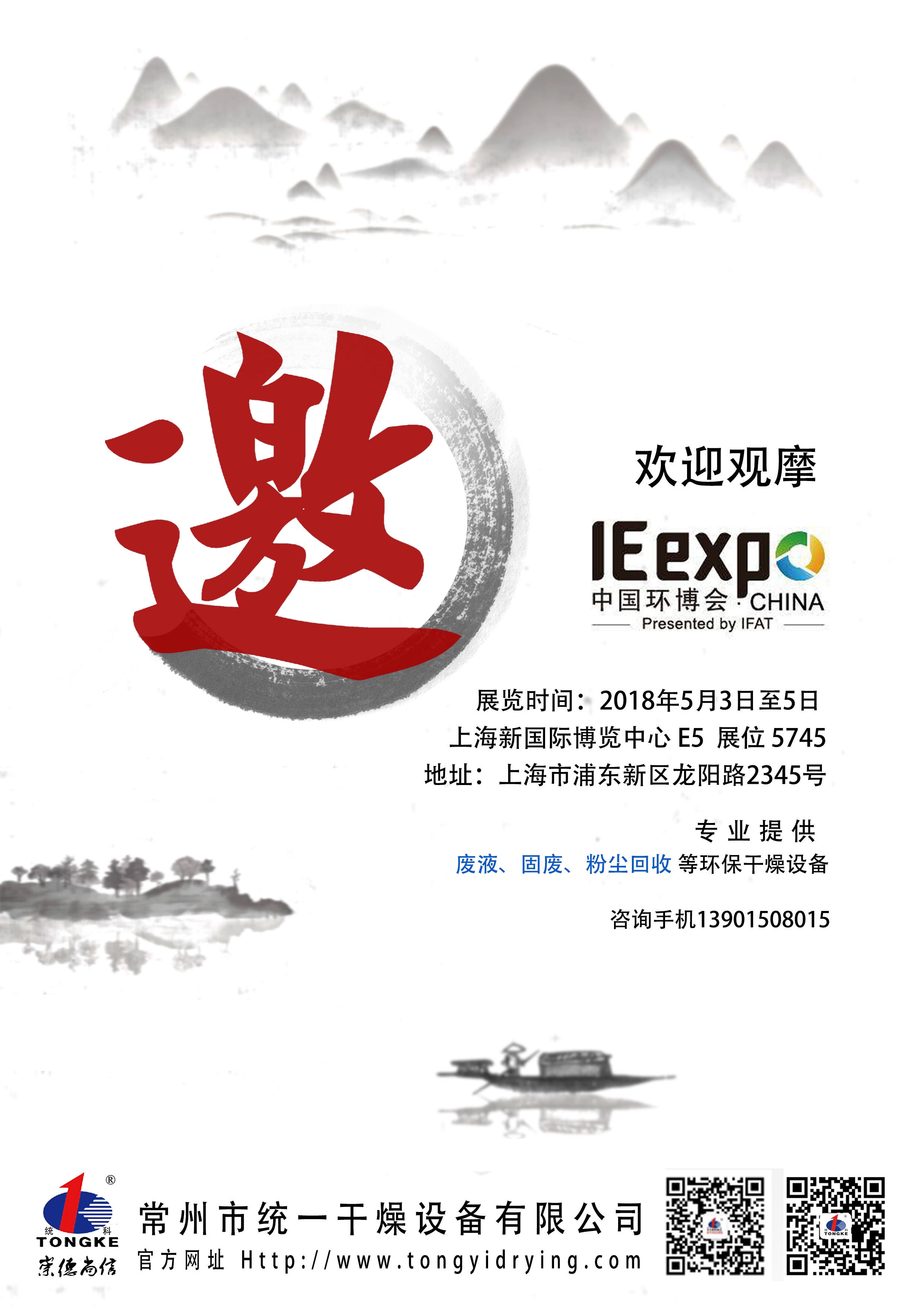 常州統(tǒng)一干燥與您相約中國環(huán)博會 展館E5 展位 5745