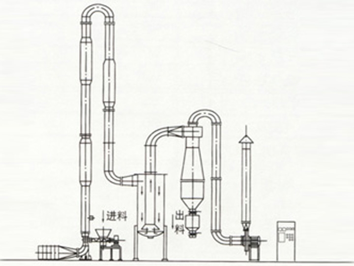 工作原理 在旋流干燥器內(nèi)氣流夾帶物料從切線方向進(jìn)入,沿著內(nèi)壁形成螺旋線運(yùn)動(dòng),物料在氣流中均勻分布與旋轉(zhuǎn)擾動(dòng),強(qiáng)化了干燥過(guò)程,凡能用氣流干燥的物料,旋轉(zhuǎn)氣流干燥器均為能適應(yīng),特別對(duì)增水性、顆粒小、不怕粉碎和熱敏性物料尤為適用。視物料特性,如粉塵回收可采用脈沖布袋除塵或水沫除塵,回收率可達(dá)99.99%。